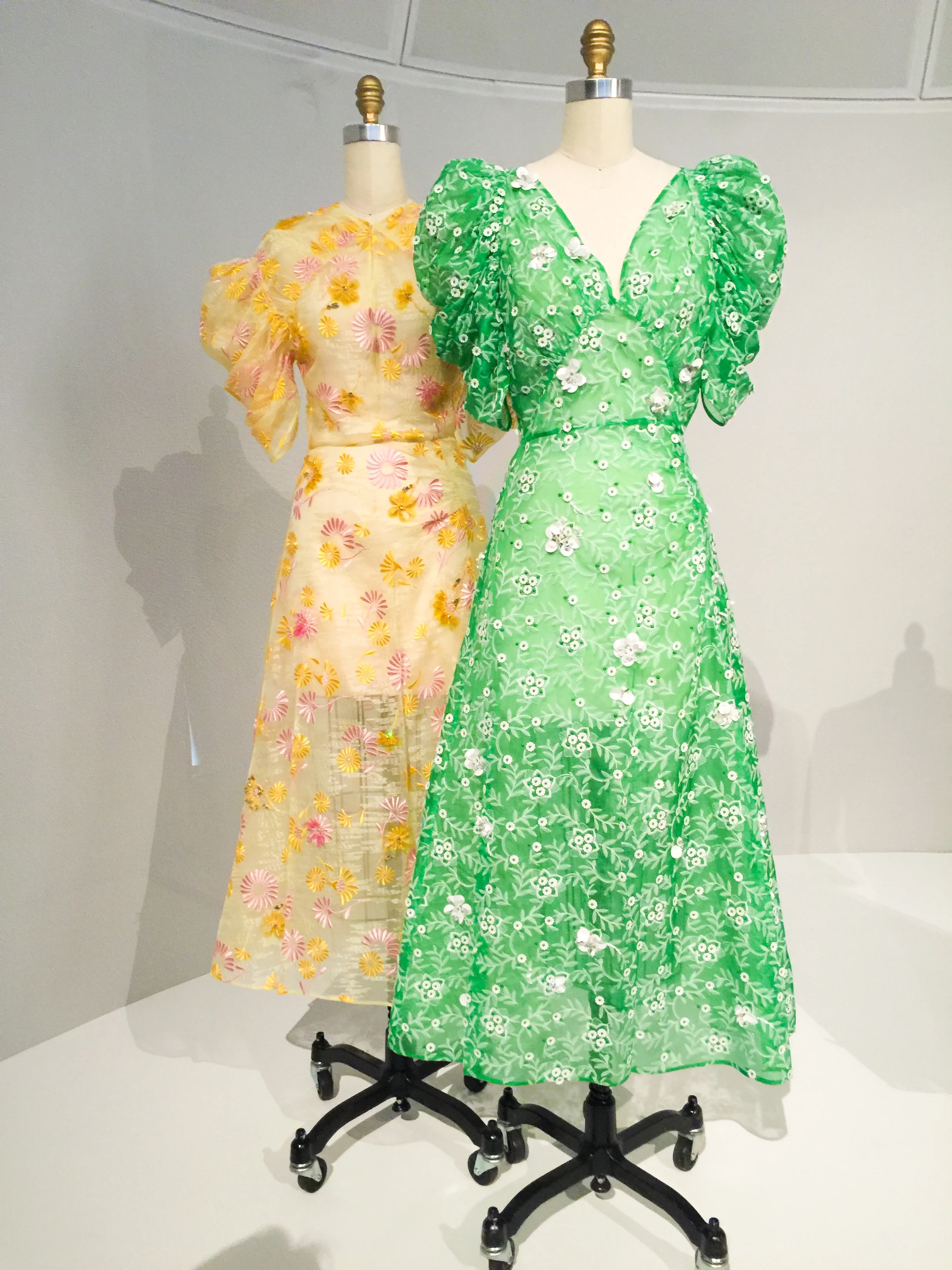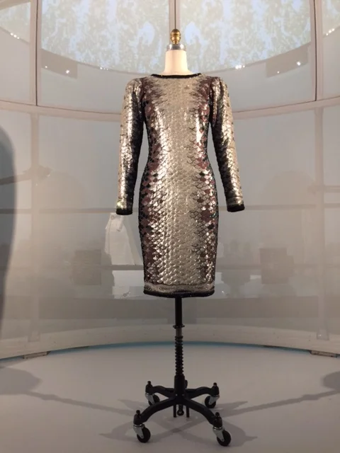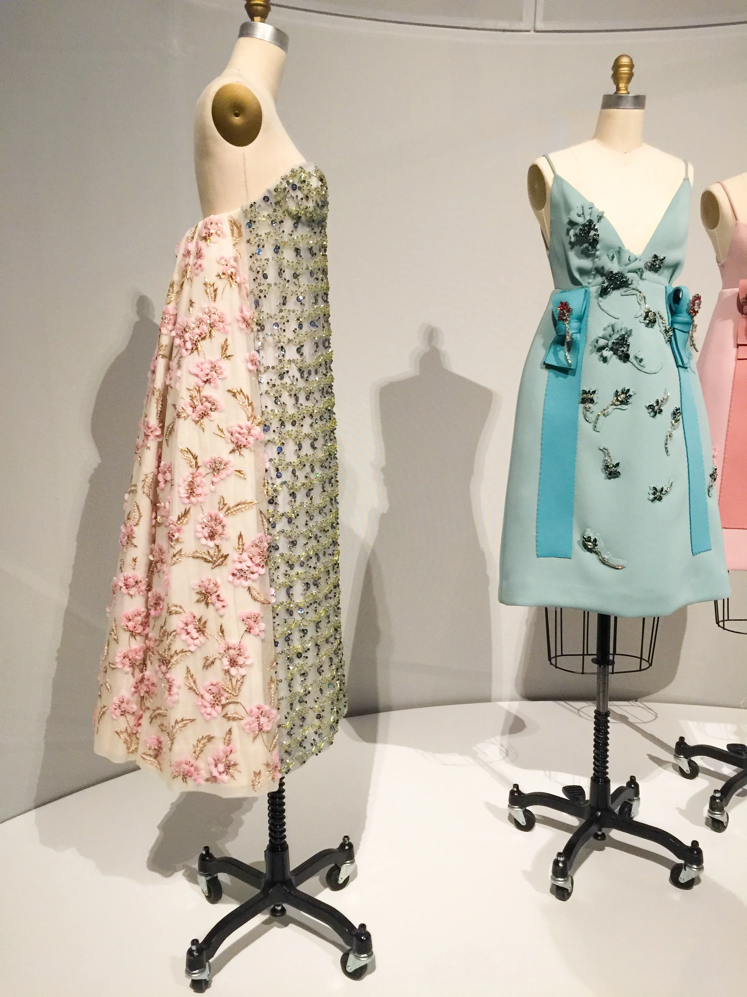 The signage does an amazing job of explaining the difference between "Haute Couture" and "Pret-a- porter" the the way garments are produced. The exhibit describes and presents the idea that hand and machine are equals in the forward movement of the fashion industry.