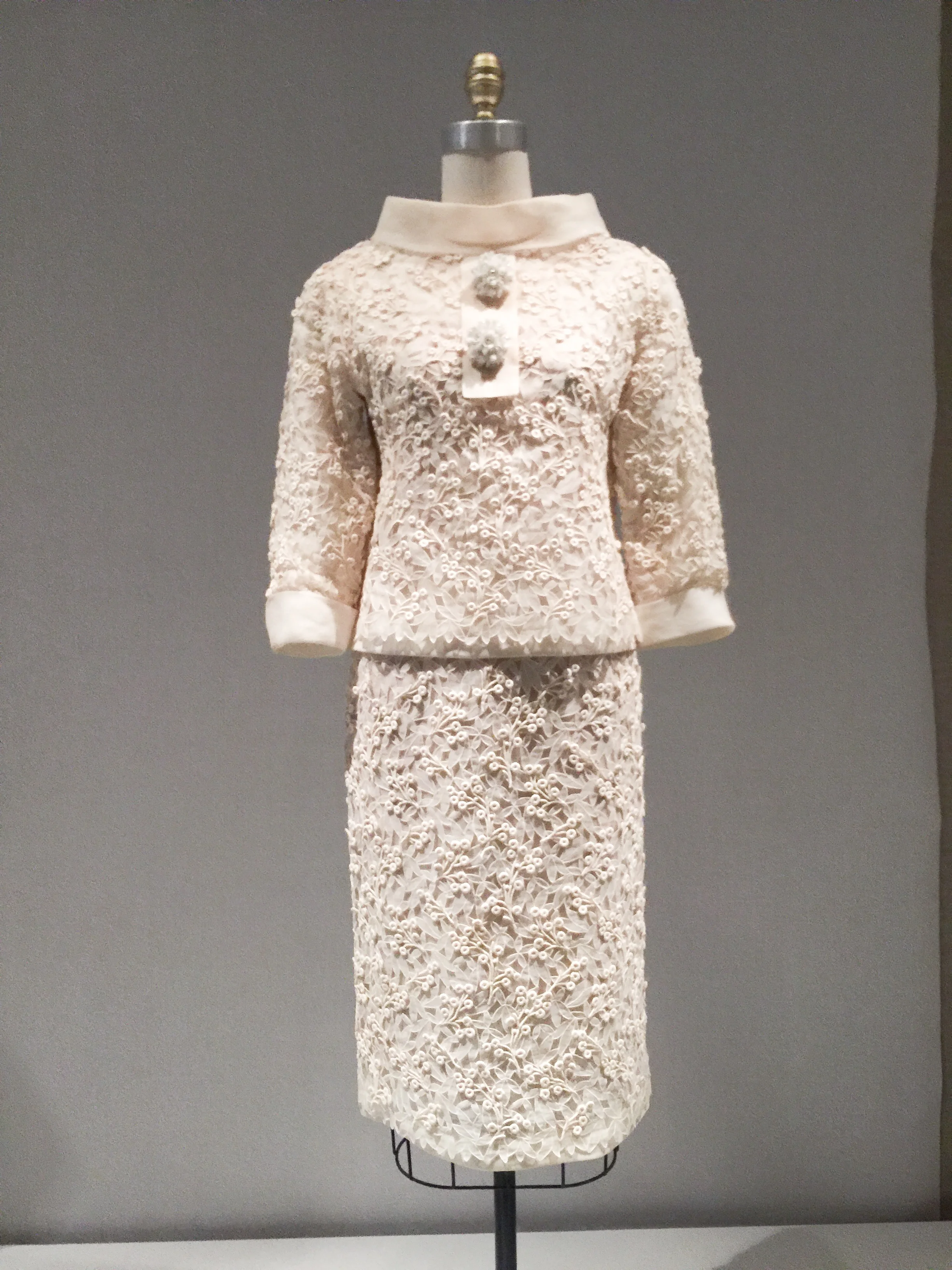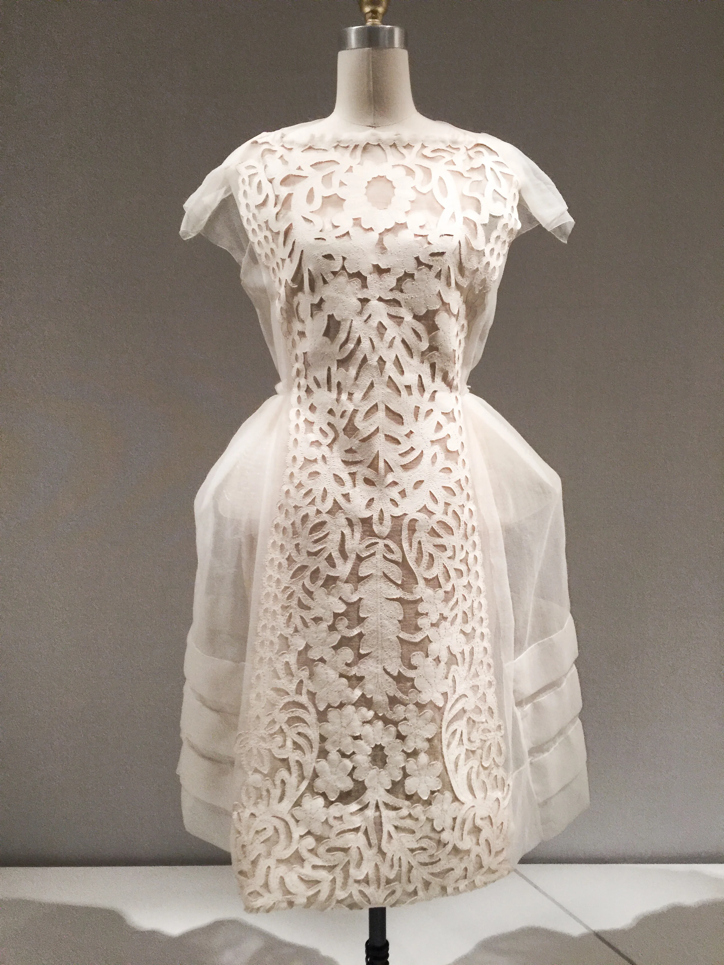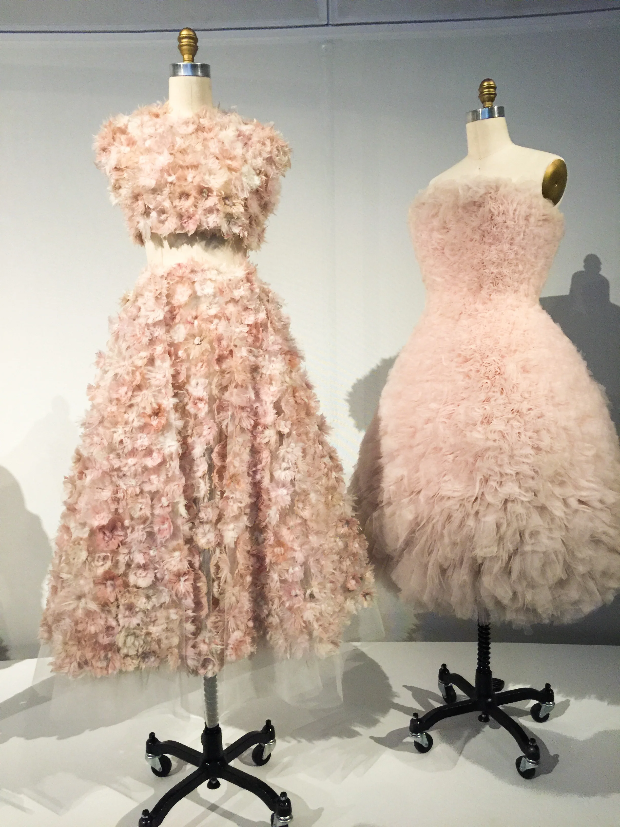 The signage does an amazing job of explaining the difference between "Haute Couture" and "Pret-a- porter" the the way garments are produced. The exhibit describes and presents the idea that hand and machine are equals in the forward movement of the fashion industry.